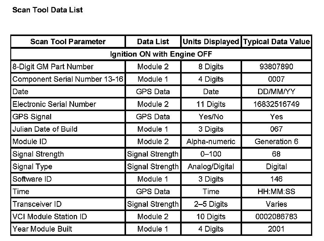 Scan Tool Data List: