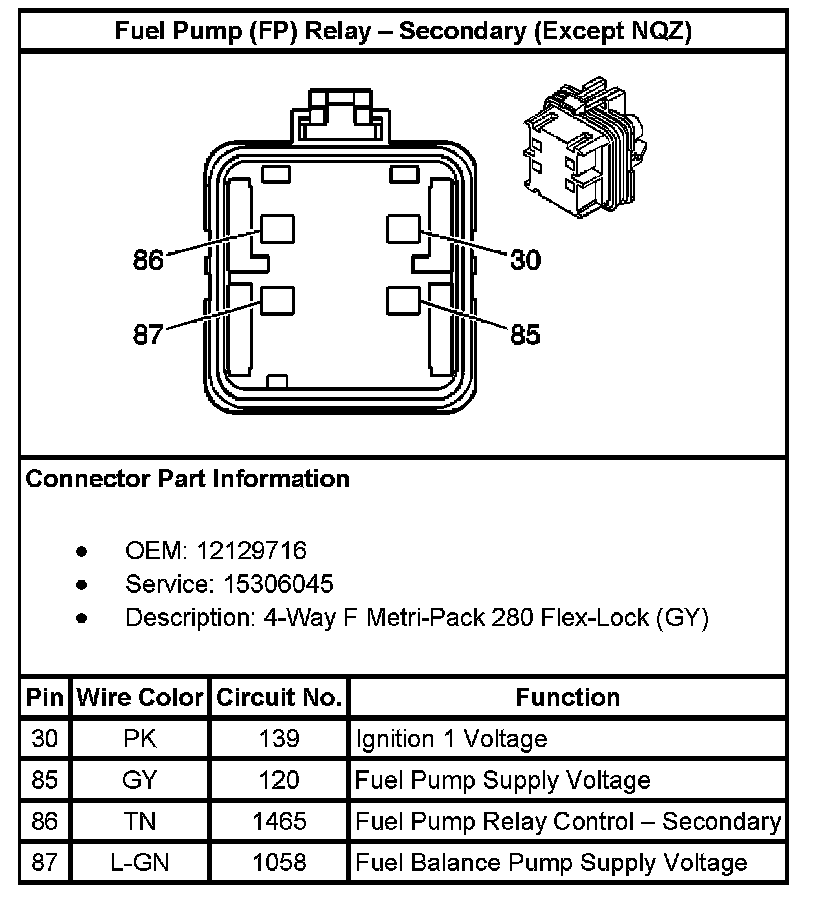 Fuel Pump (FP) Relay - Secondary (Except NQZ):
