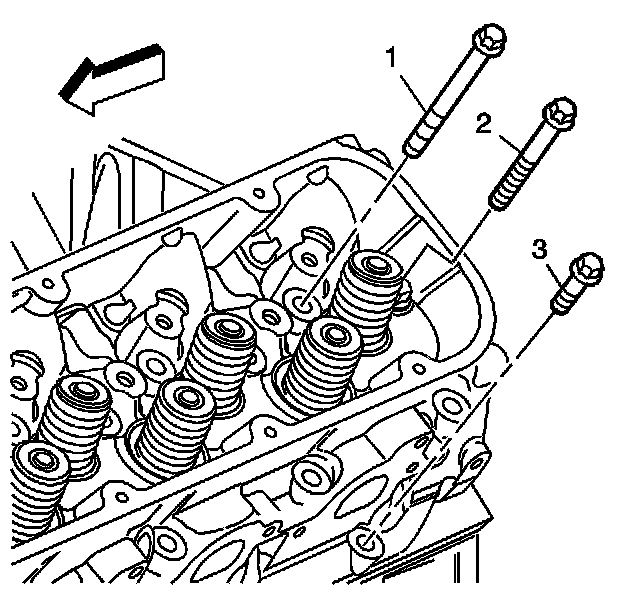 7. Remove and discard the cylinder head bolts (1, 2, and 3).