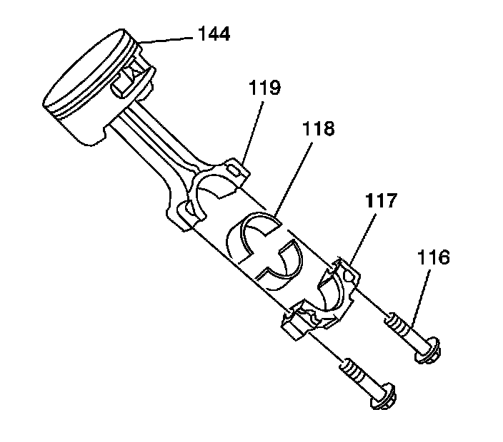 1. Remove the connecting rod bearings (118) from the rod (119) and cap (117).