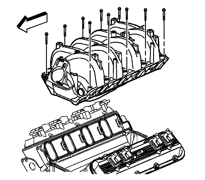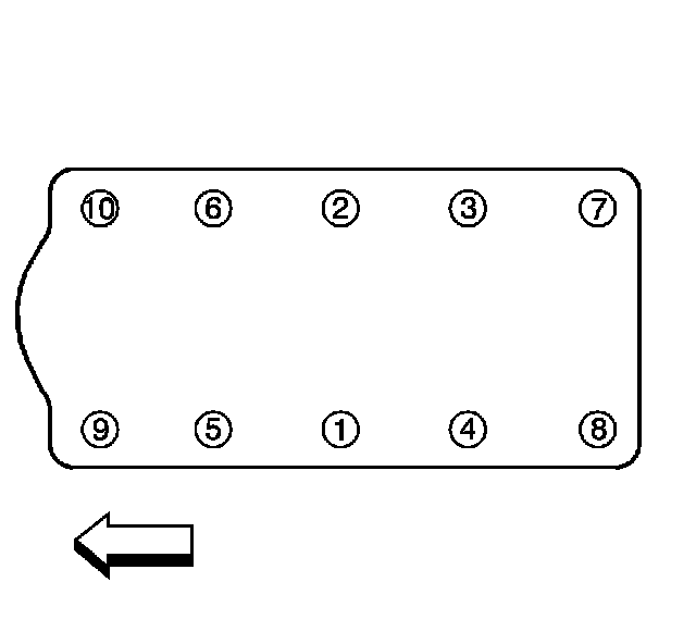 10. Notice: Ensure the intake manifold does not shift as the intake manifold bolts are tightened in the proper sequence. Failure to follow the entire intake manifold bolt tightening sequence exactly, may result in an oil leak and serious engine damage.