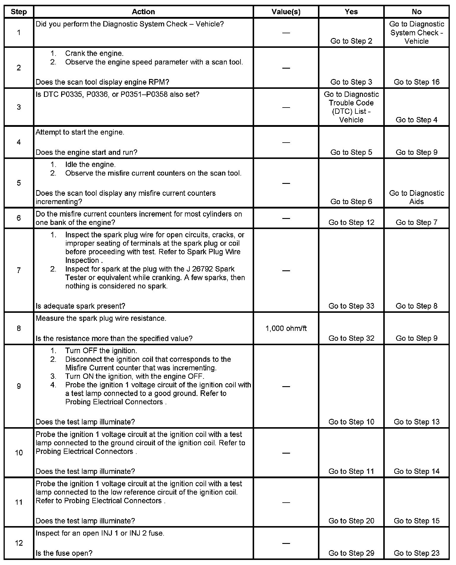 12. A good indication that the fuse is open is all off the misfire current counters are incrementing on one side of the engine. Inspect the ignition positive voltage circuit for a grounded circuit. If the fuse is open and the ignition coil circuits are OK, inspect the injector circuits for being grounded.