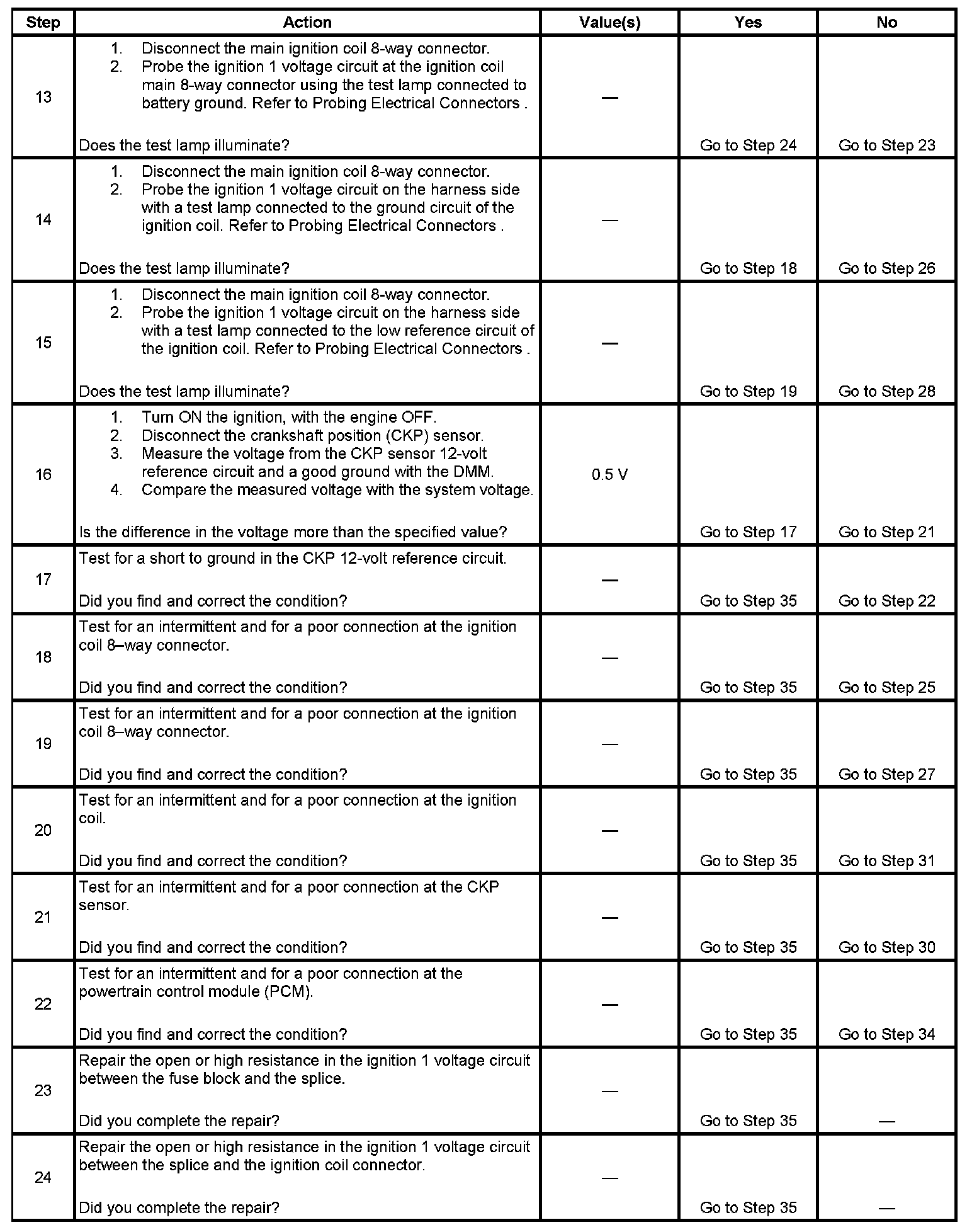 The PCM triggers an ignition coil by grounding the appropriate IC circuit using information from the crankshaft position (CKP) and camshaft position (CMP) sensors.