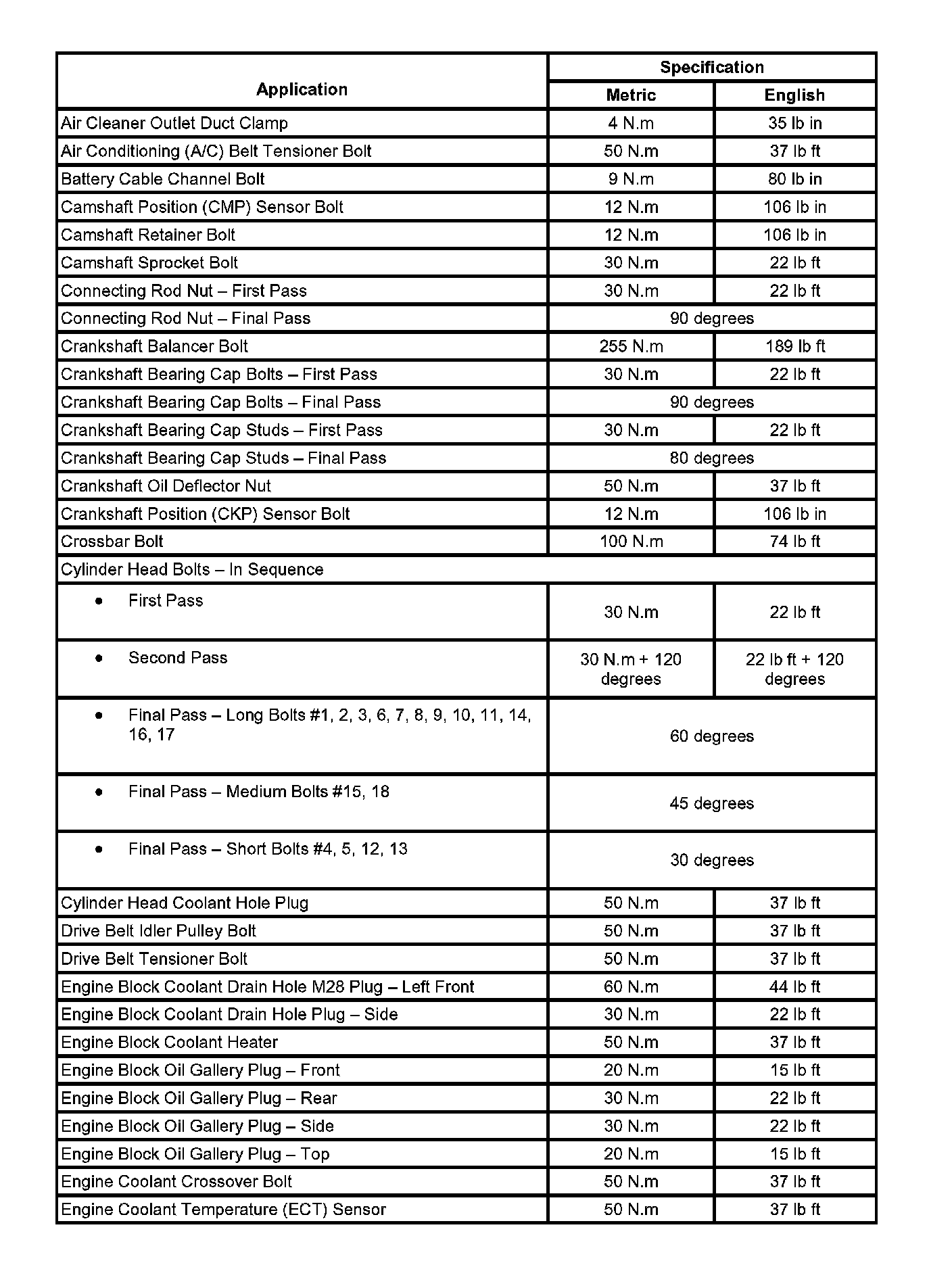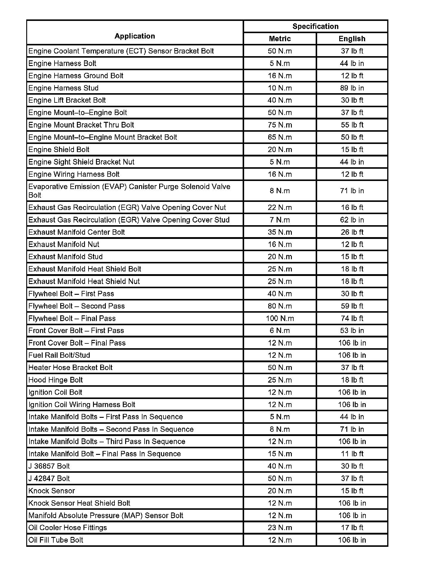 Fastener Tightening Specifications:
