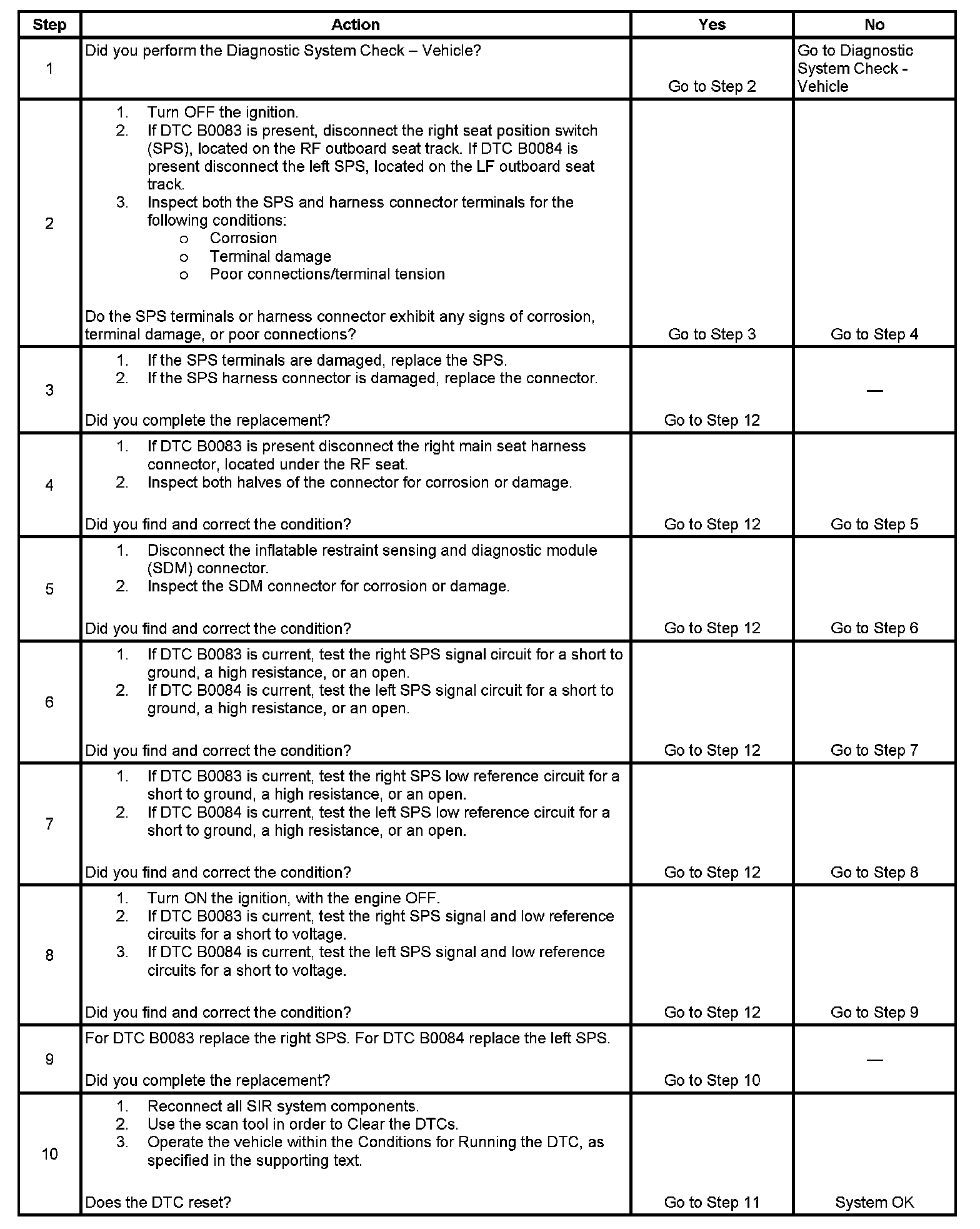 6. This step tests for a short to ground, a high resistance, or an open in the SPS signal circuit.