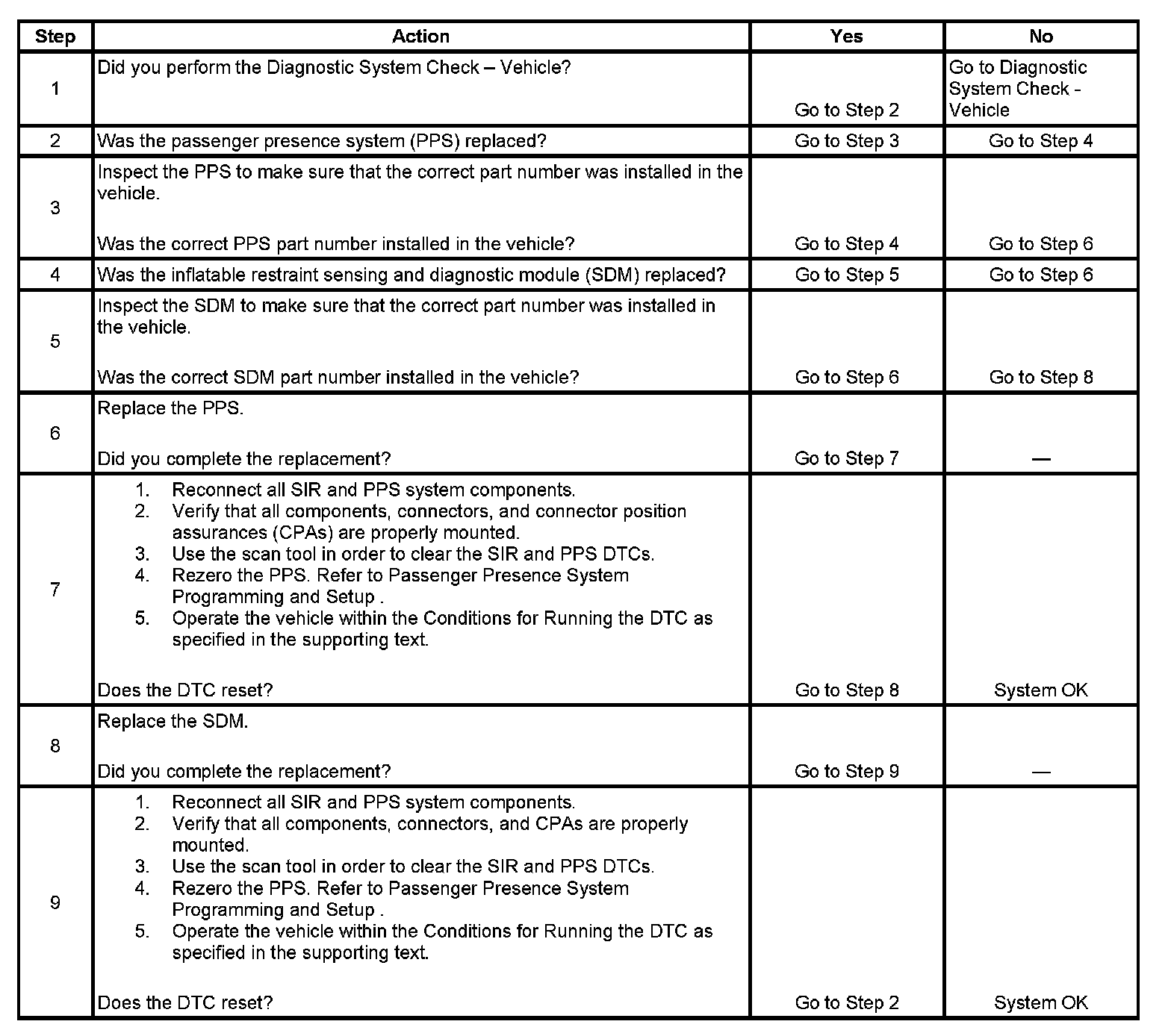IMPORTANT: DTC B0098 will also set if the PPS has a current malfunction and has set DTC 064. The SDM will set DTC B0098 as current and command the AIR BAG indictor ON. This is done to notify the driver of any PPS malfunctions. When DTC B0098 is present it is important to check the PPS for any current DTCs. Refer to Passenger Presence System Flash Code Procedures. If the PPS has any current DTCs, address these before performing this DTC chart.