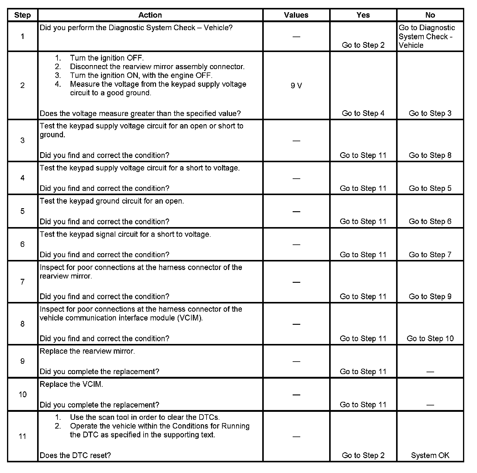 - The VCIM powers the button assembly through the keypad supply voltage circuit for 11.5 milliseconds, turns the power off, then waits for 50 milliseconds and sees a voltage value less than 1.8 volts on this circuit.