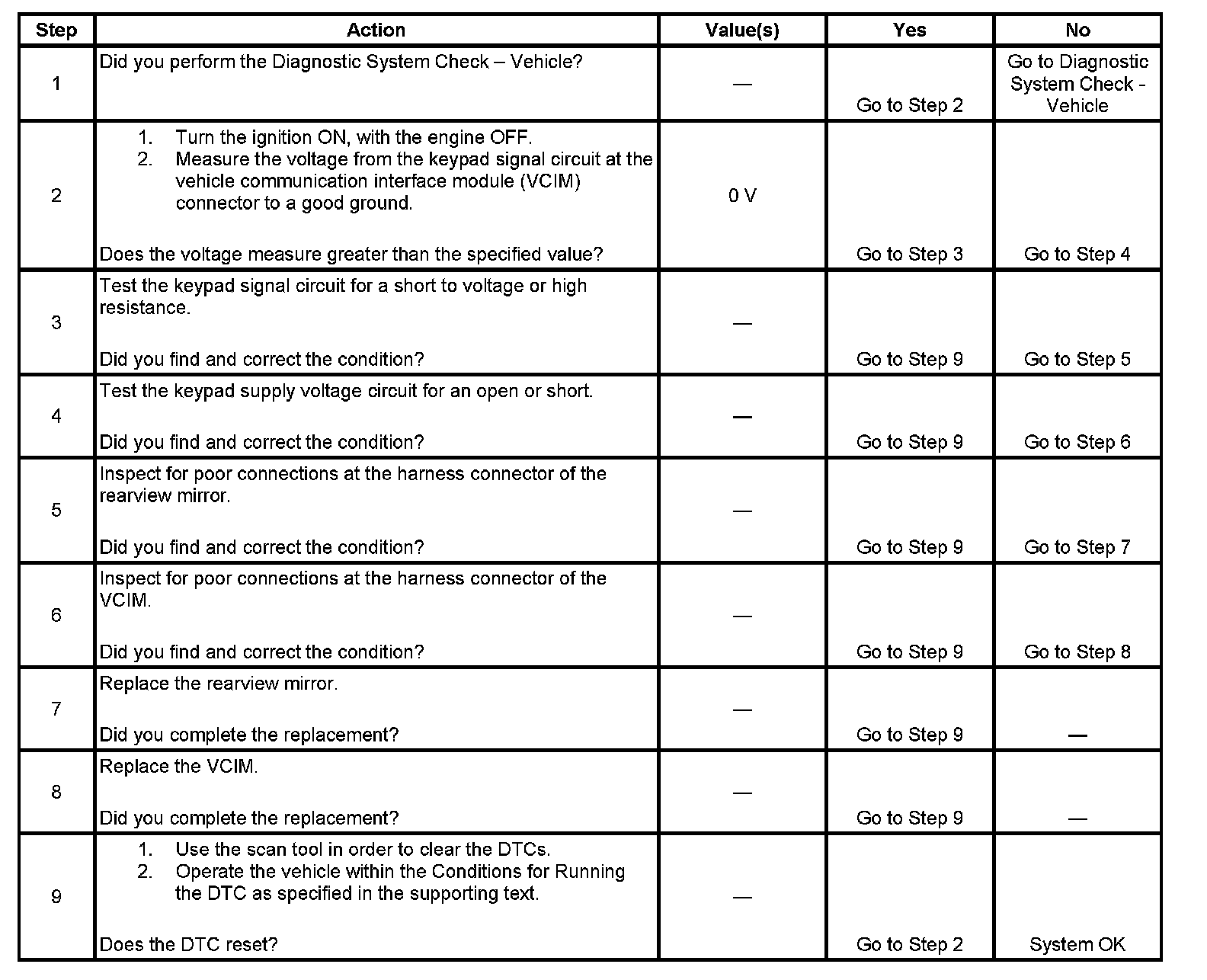 2. This step tests the at rest state of the keypad signal circuit.
