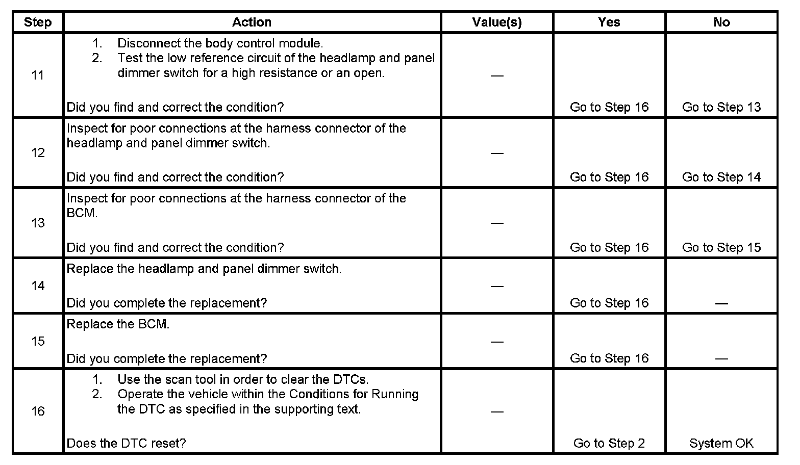 - This DTC will clear on current status after the condition for setting the fault is corrected.