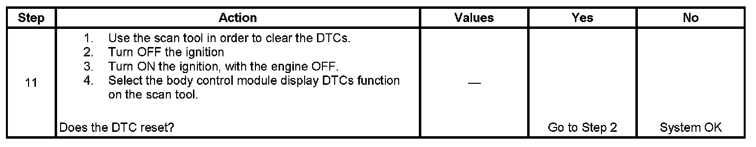 - The body control module (BCM) signal input is less than 0.4 volts for 1 second.