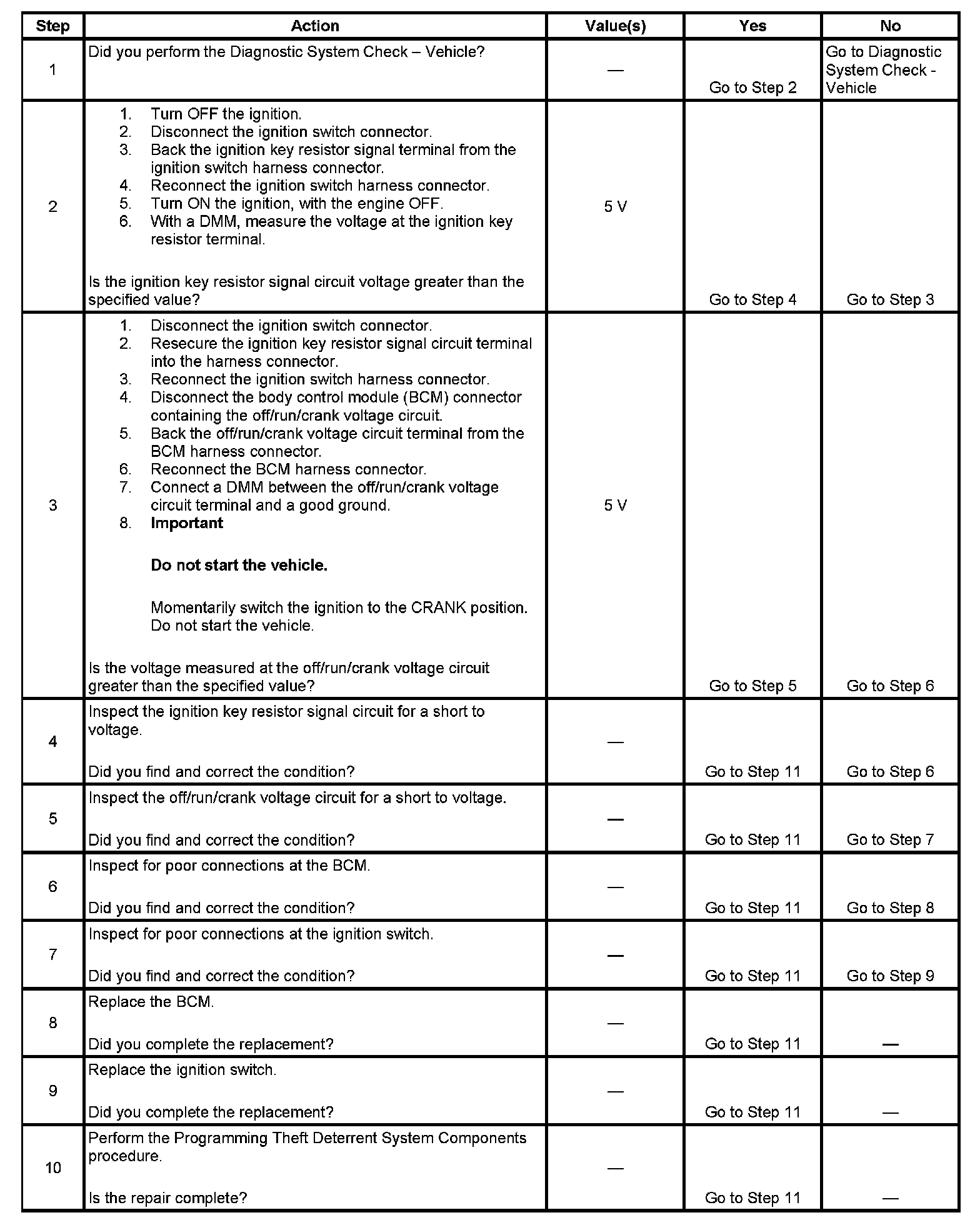 2. Test for a short to voltage on the ignition key resistor circuit.
