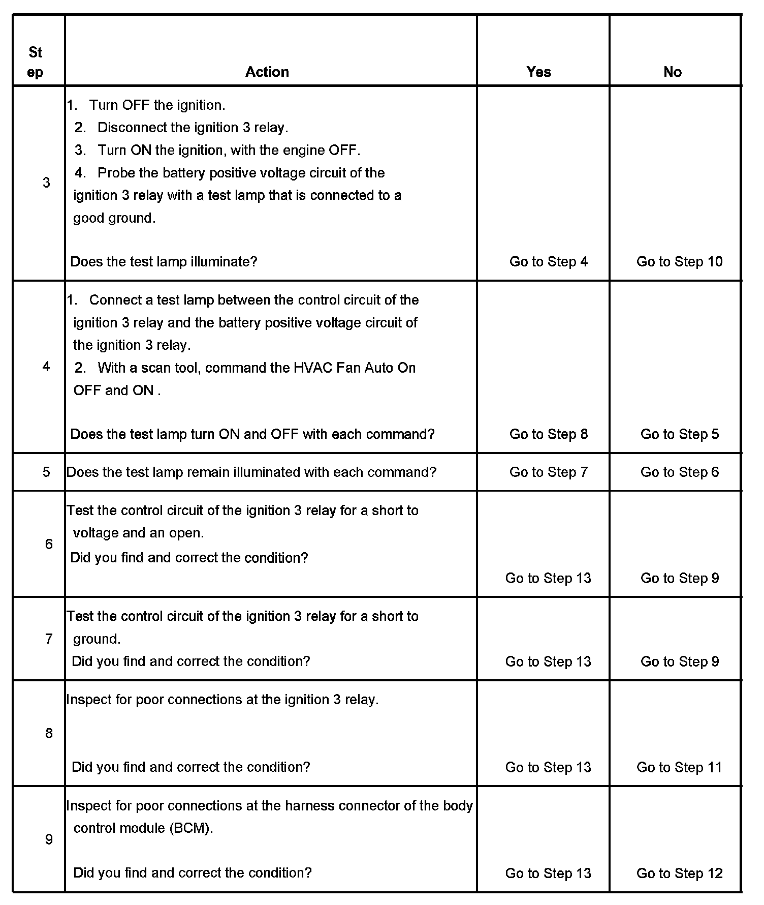 5. Tests if ground is constantly being applied to the ignition 3 relay.