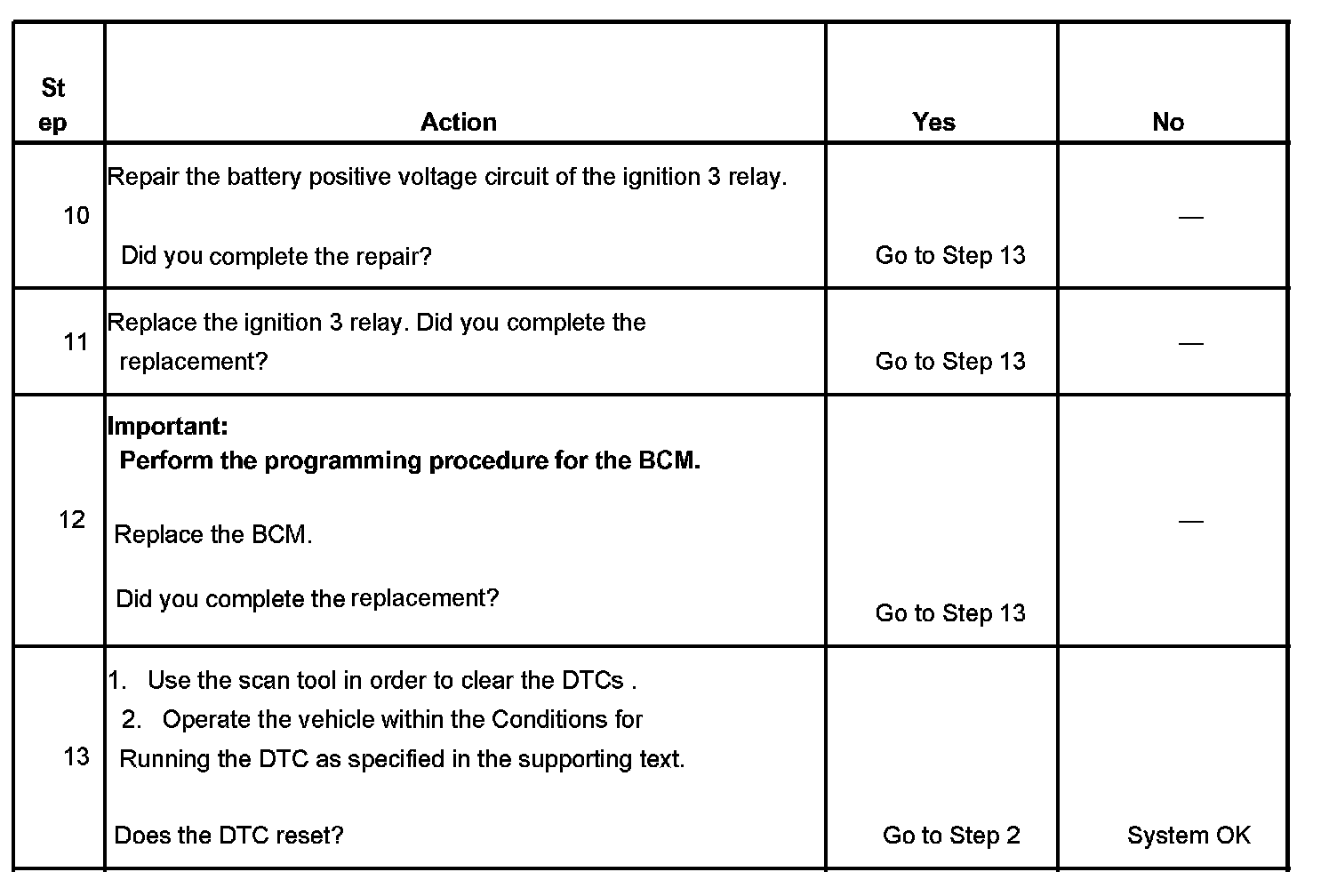 - The DTC will become history if the BCM no longer detects a failure.