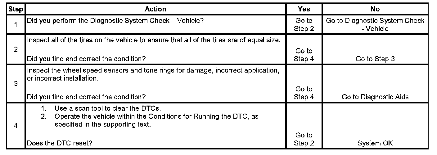 Operating the vehicle with a tire that has very low air pressure may set this DTC.