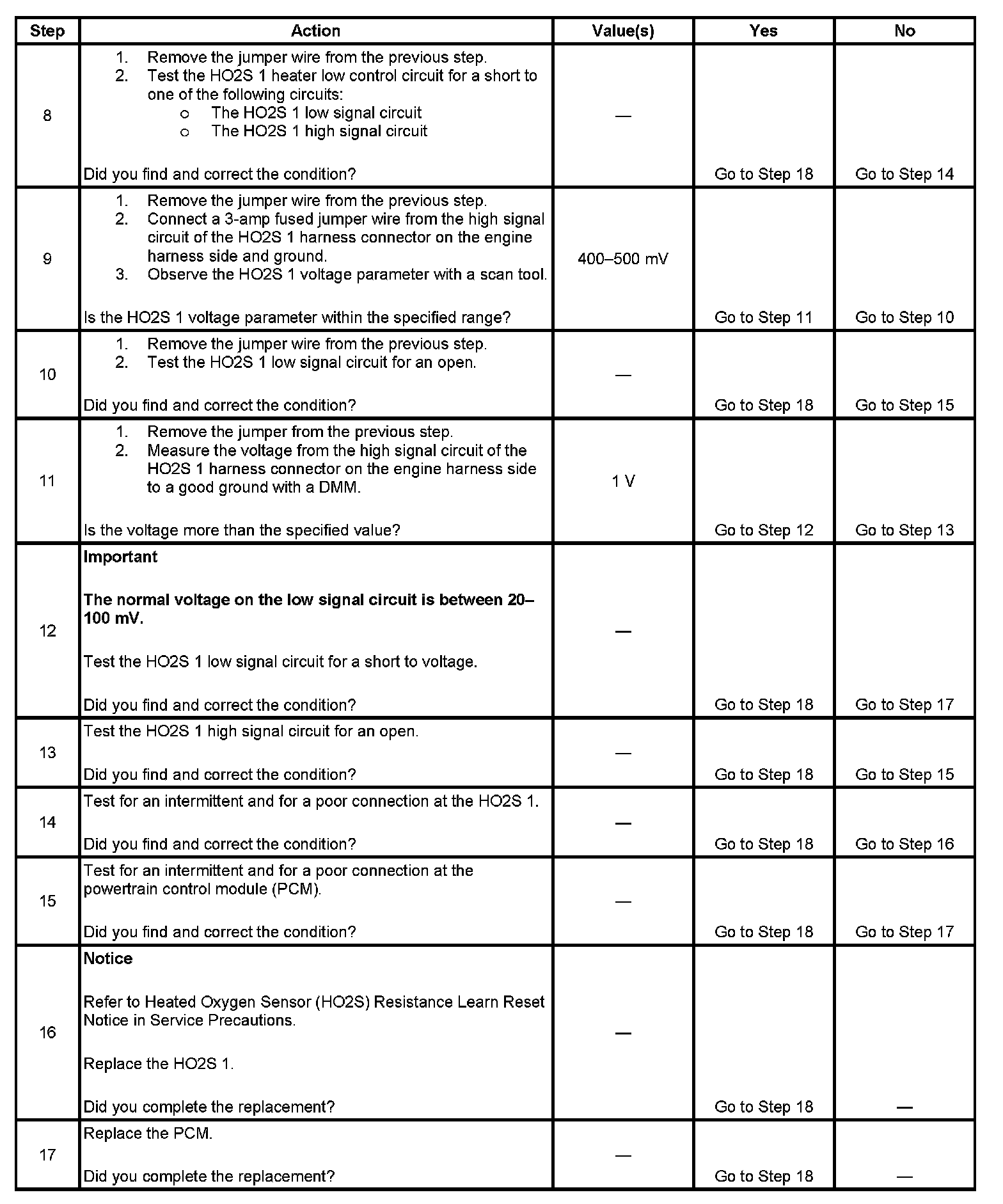 If the PCM detects that the HO2S voltage remains within the bias voltage range, DTC P0134 will set.