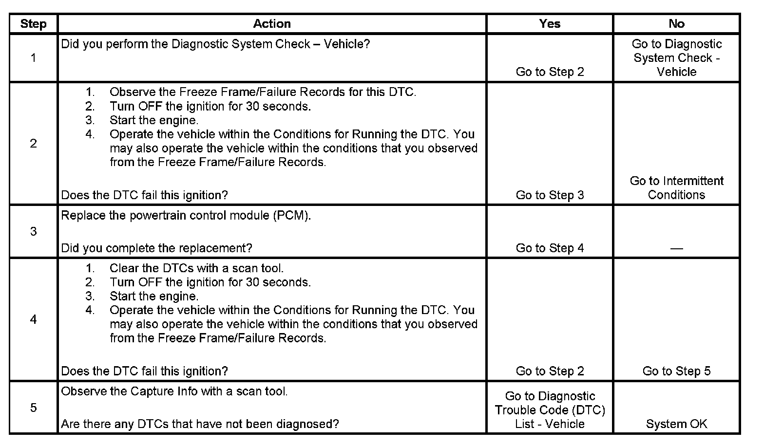 - A current DTC, Last Test Failed, clears when the diagnostic runs and passes.