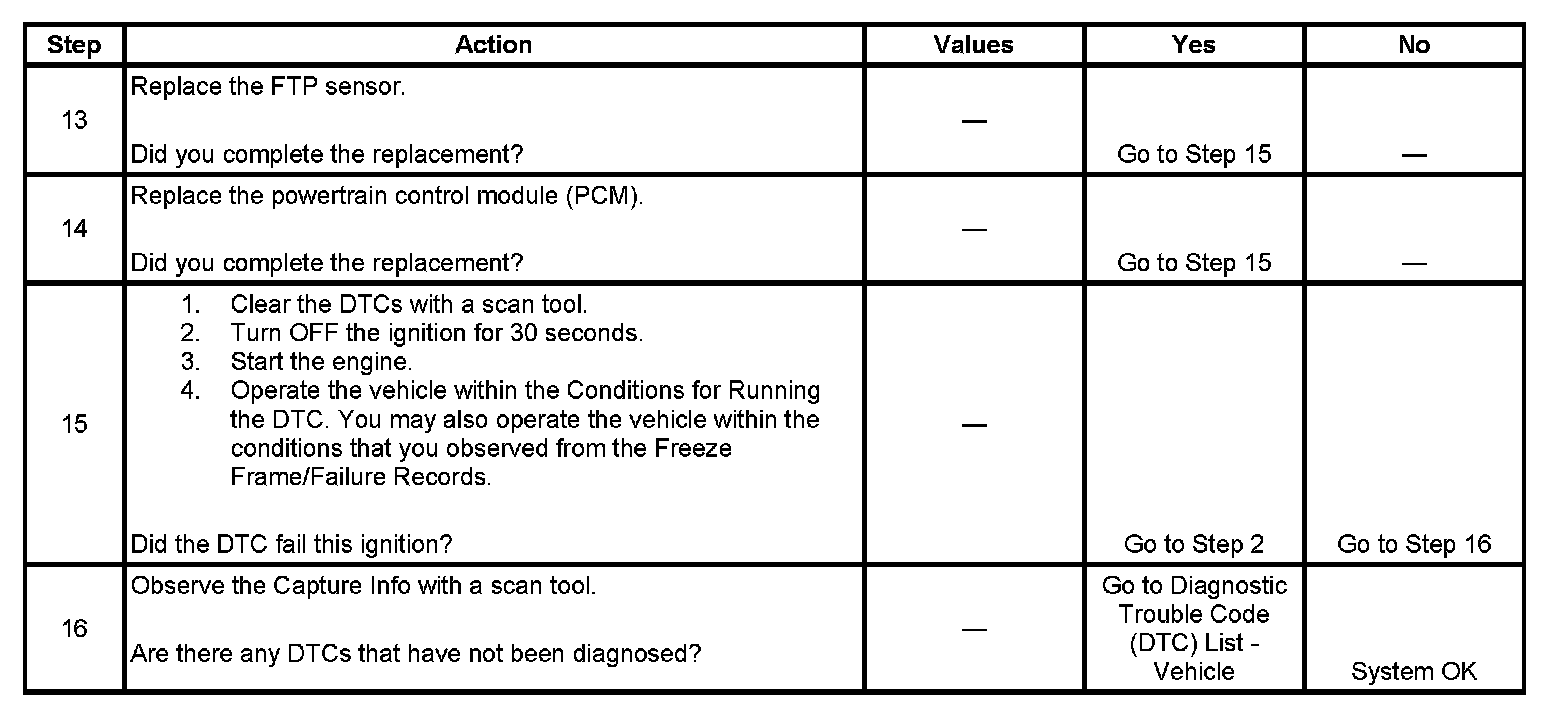 - The fuel tank pressure (FTP) sensor voltage is more than 4.9 volts.