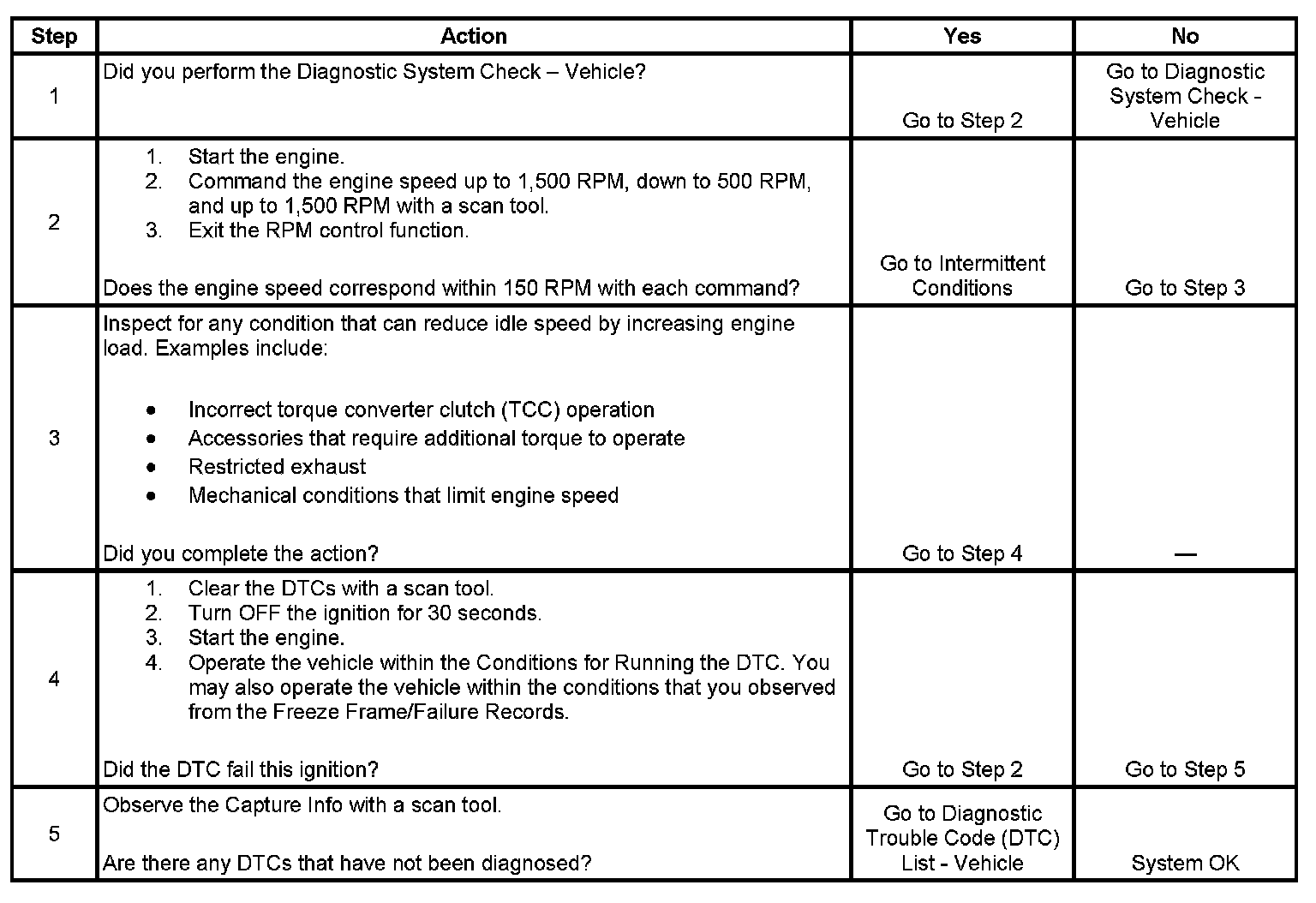 2. This test determines whether the engine can achieve the commanded RPM. If the engine does not reach the commanded RPMs, the test determines whether the RPM is too high or too low.