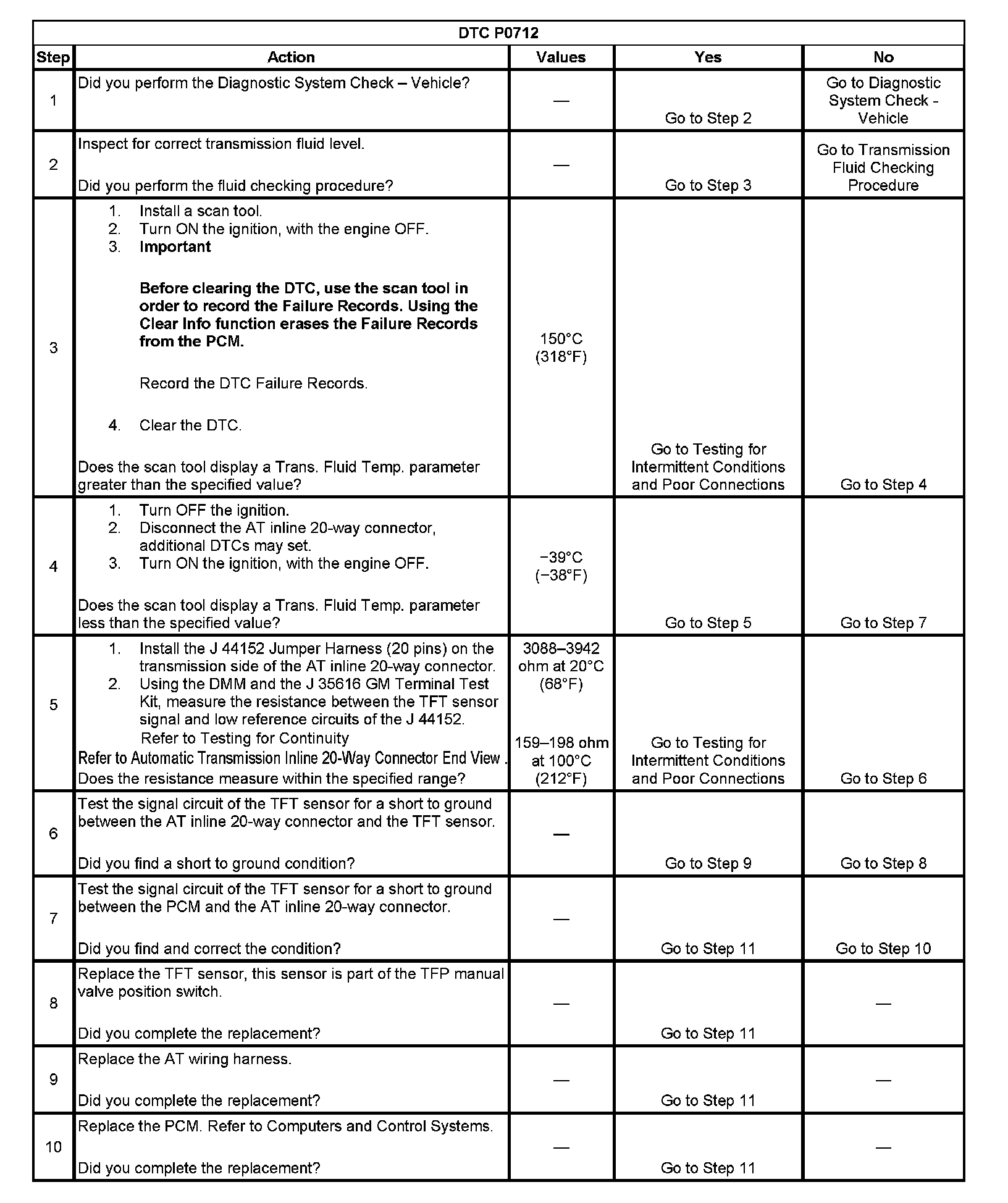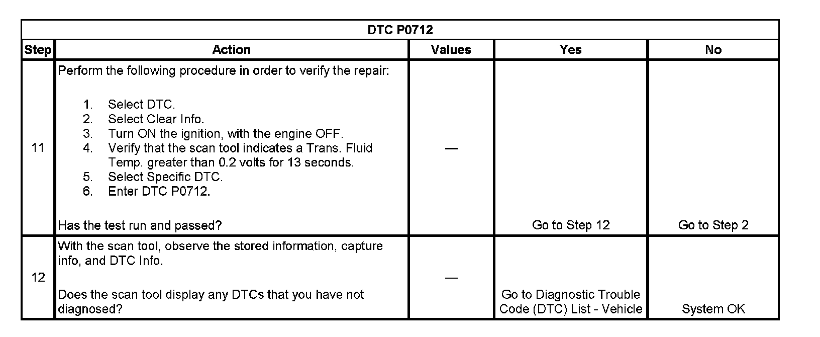 ^ The PCM stores DTC P0712 in PCM history.