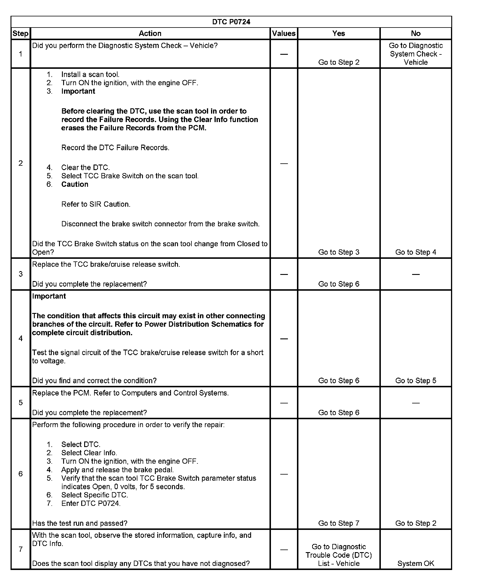 Inspect for ABS DTCs. A faulty ABS condition may contribute to setting DTC P0724.