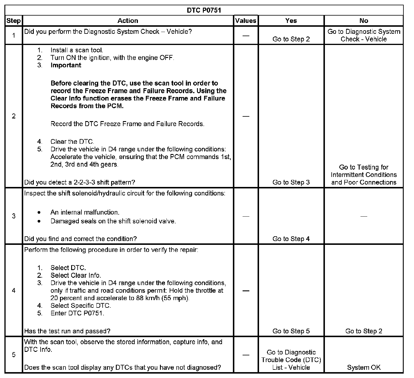 ^ The PCM stores DTC P0751 in PCM history.
