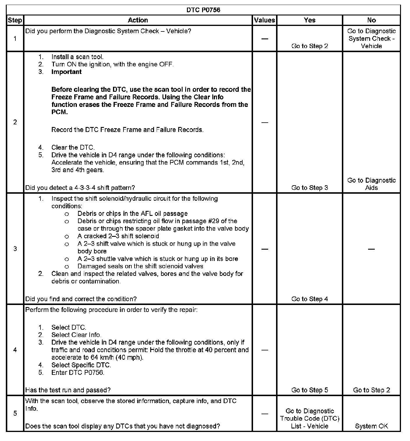 When the powertrain control module (PCM) detects a 4-3-3-4 shift pattern, then DTC P0756 sets. DTC P0756 is a type A DTC.
