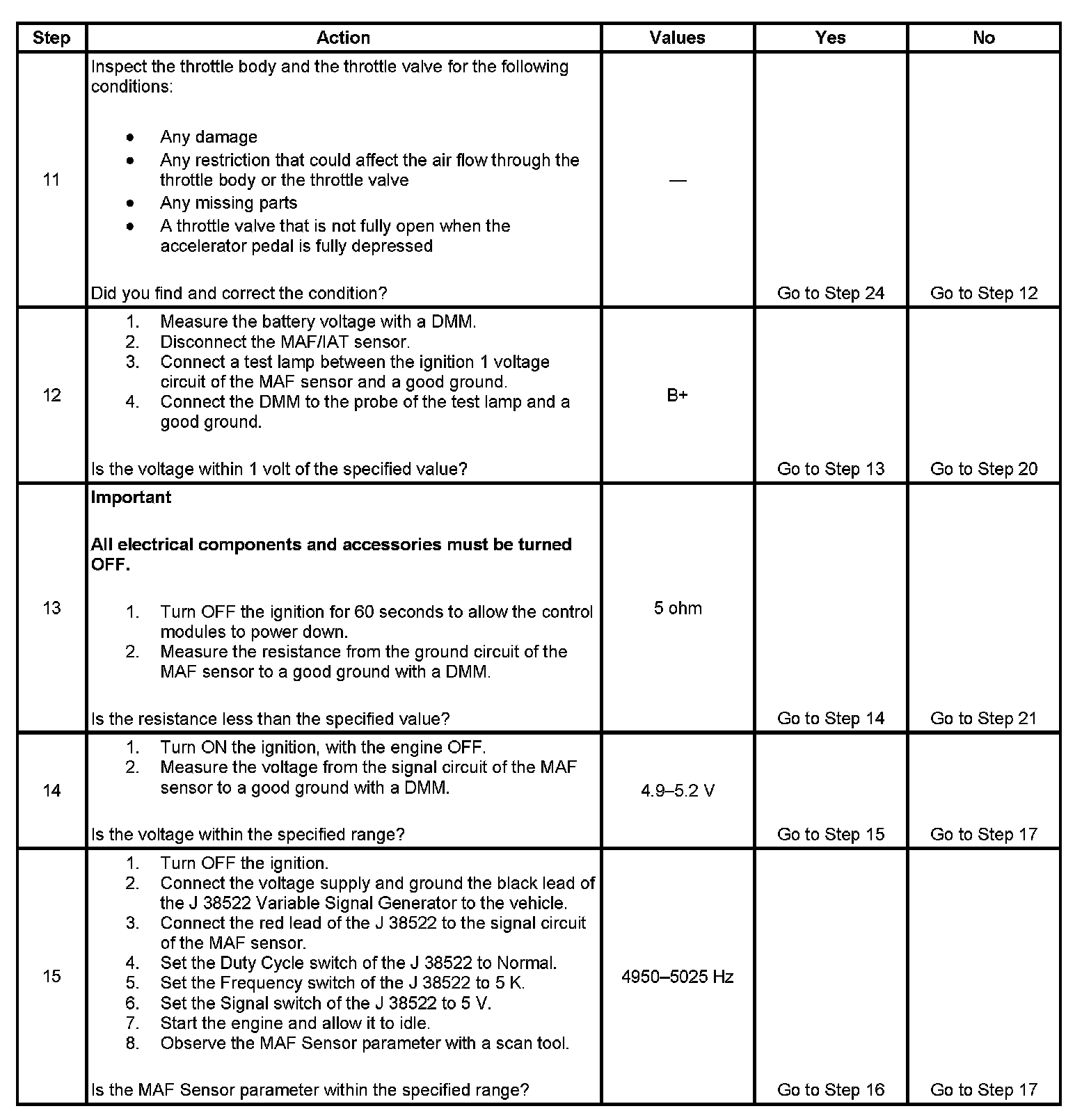 15. This step will determine if the PCM can accurately process the frequency signal that it receives from the MAF sensor.