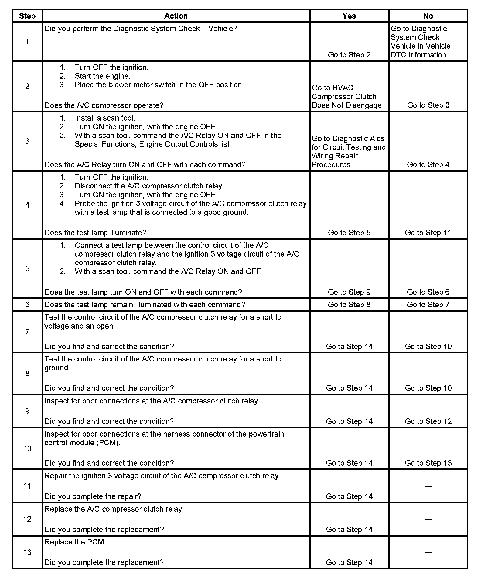 6. This step tests if ground is constantly being applied to the A/C compressor clutch relay.