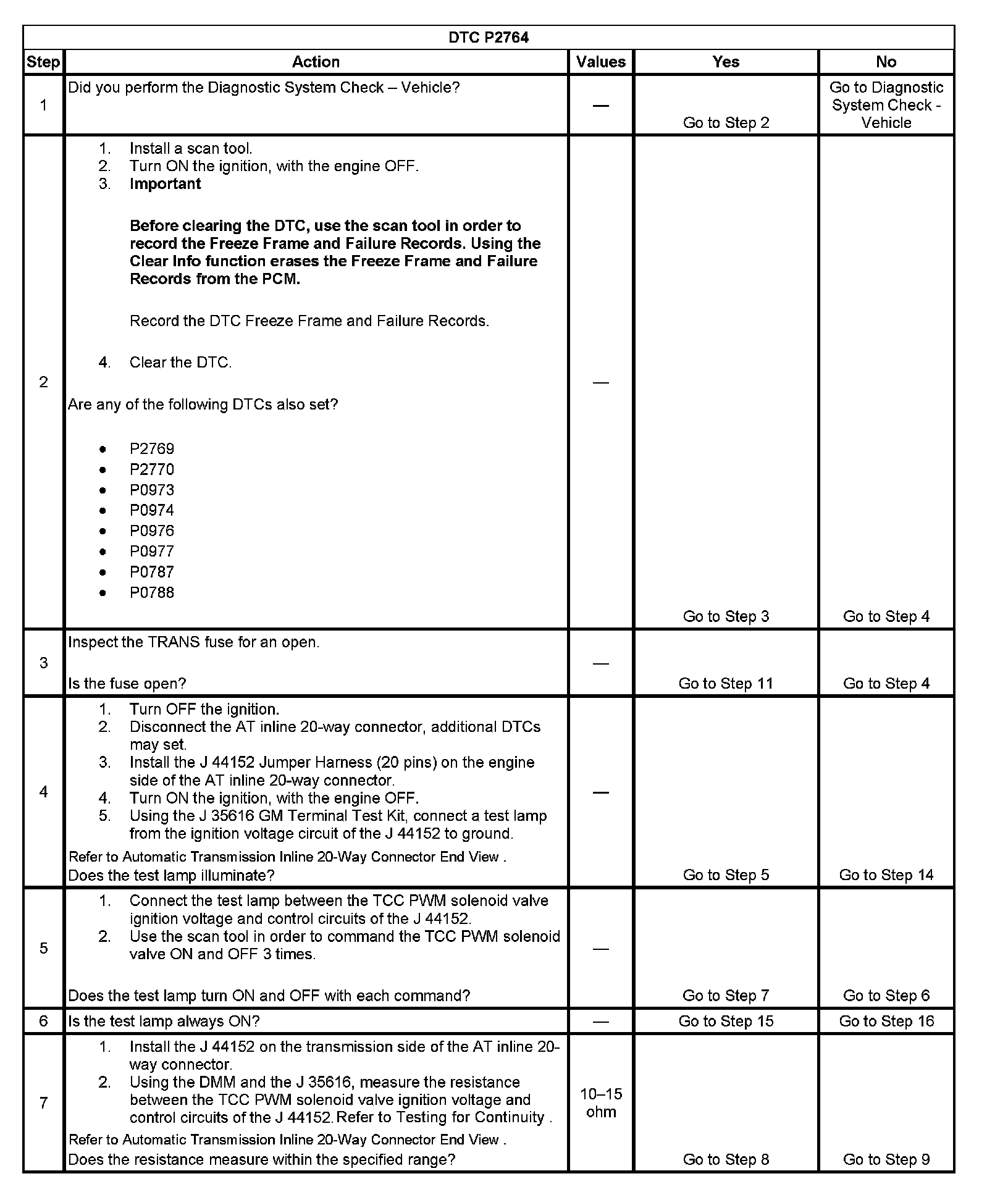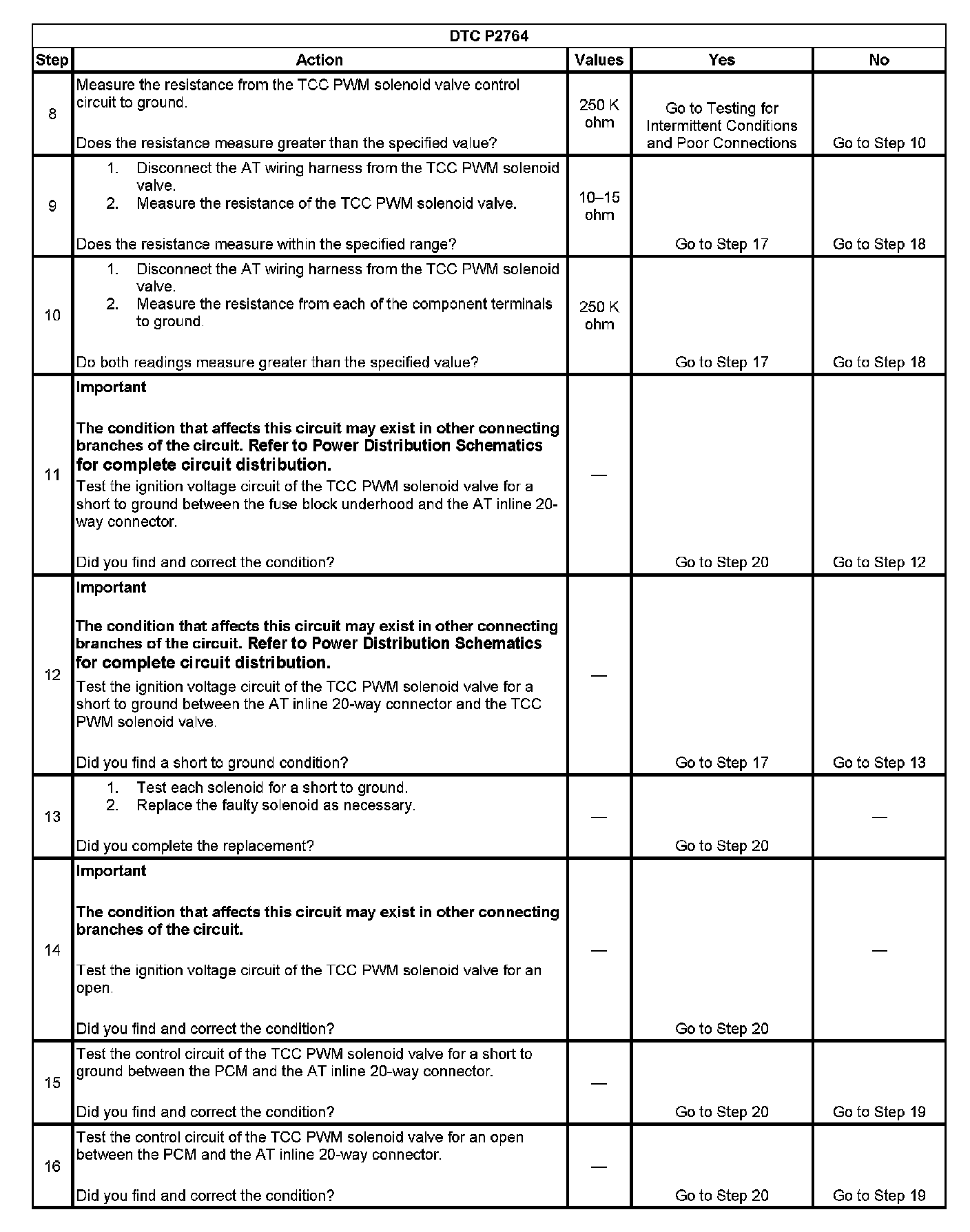 7. This step tests the resistance of the TCC PWM solenoid valve and the automatic transmission wiring harness.