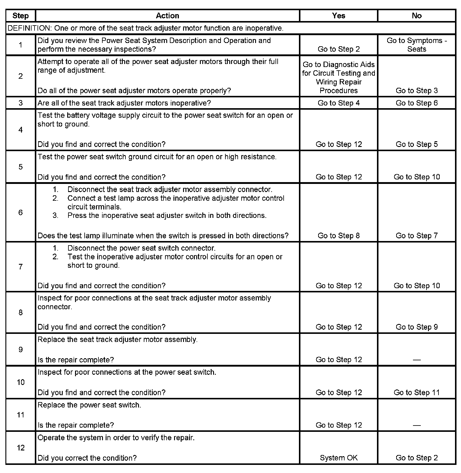 Power Seat Inoperative