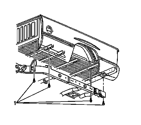 6. Remove the pickup box fasteners (1) from the frame rails.