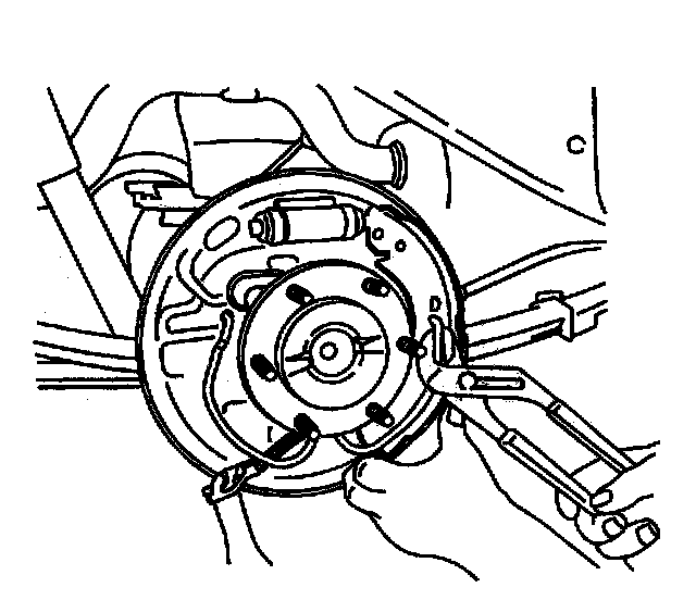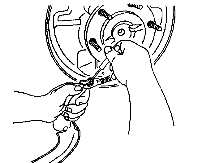 Important Before removing the brake return spring, adjust the brake shoes to the lowest position. This will reduce the tension on the retractor spring.