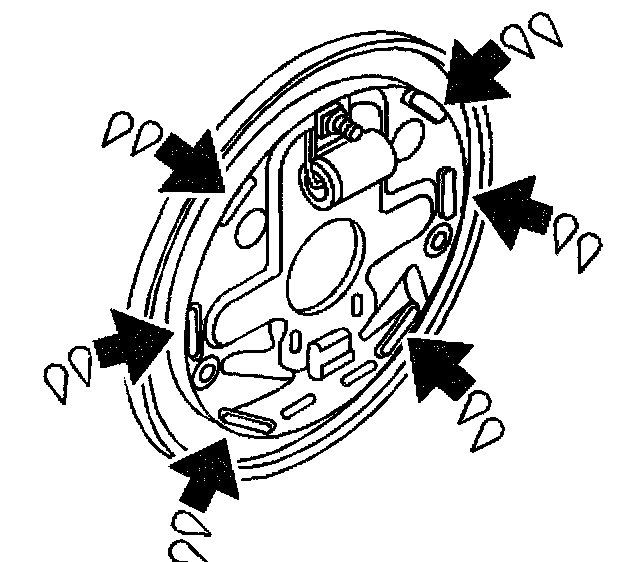 Important Ensure that the retractor spring is properly seated in the retaining bracket at the bottom of the backing plate.