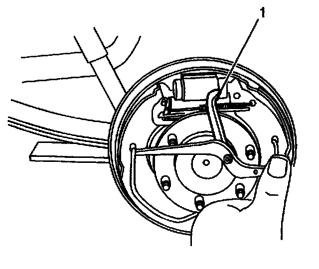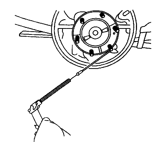 Important When removing the park brake cable from the lever, the park brake return spring will remain attached to the lever. DO NOT remove the return spring from the lever. If the return spring becomes separated from the lever, replace the rear brake shoes. The lever is part of the brake shoe assembly.