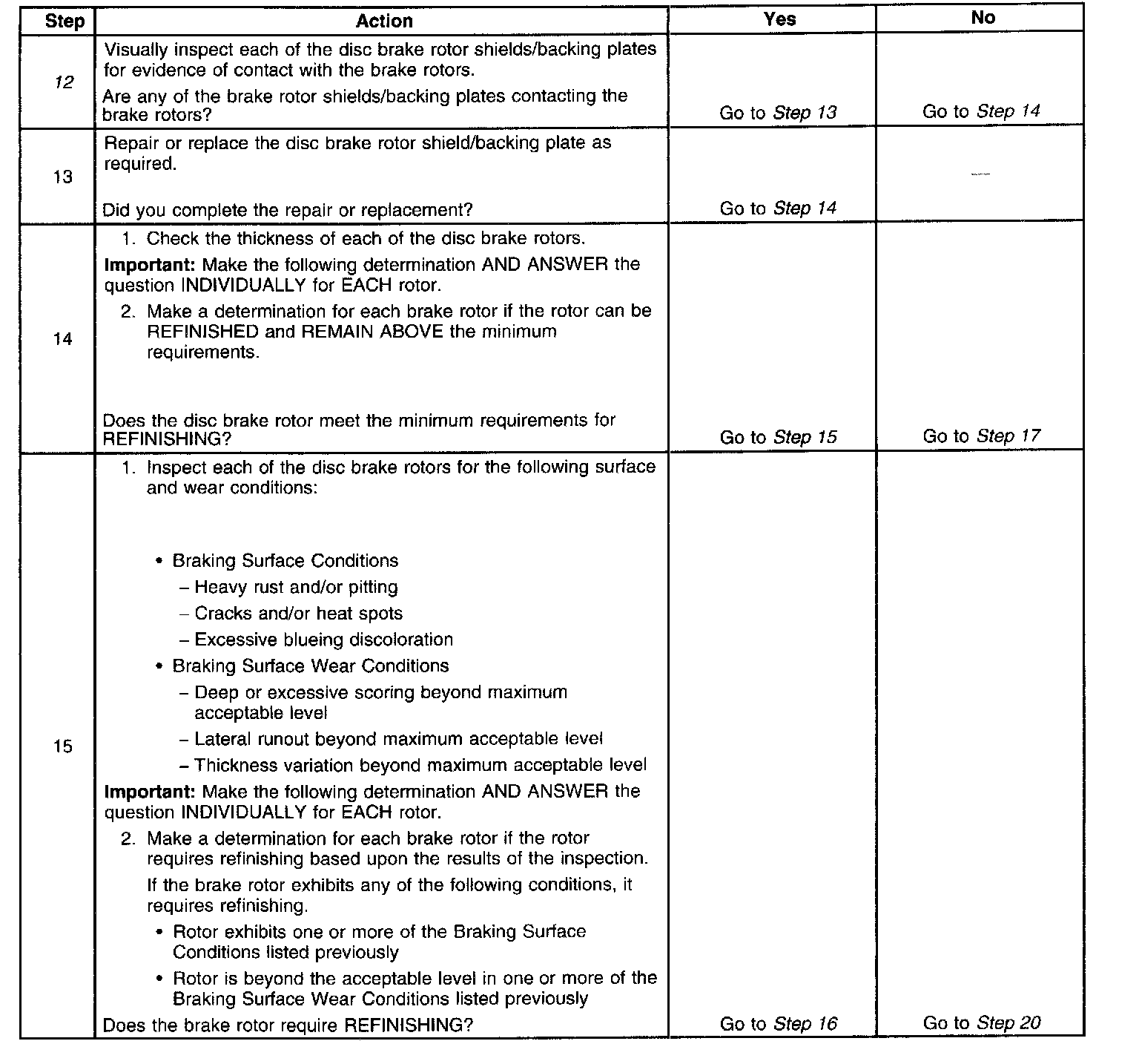 12. Disc brake rotor shields/backing plates that come in contact with disc brake rotors may cause brake system noise.