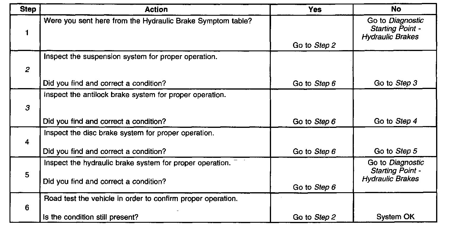 2. Suspension components that are not operating properly may cause a disturbance to the vehicle during application of the brake system.
