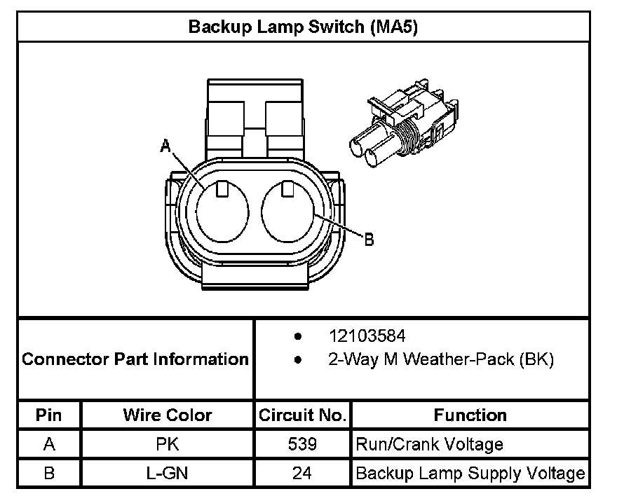 Backup Lamp Switch (with RPO Code MA5):