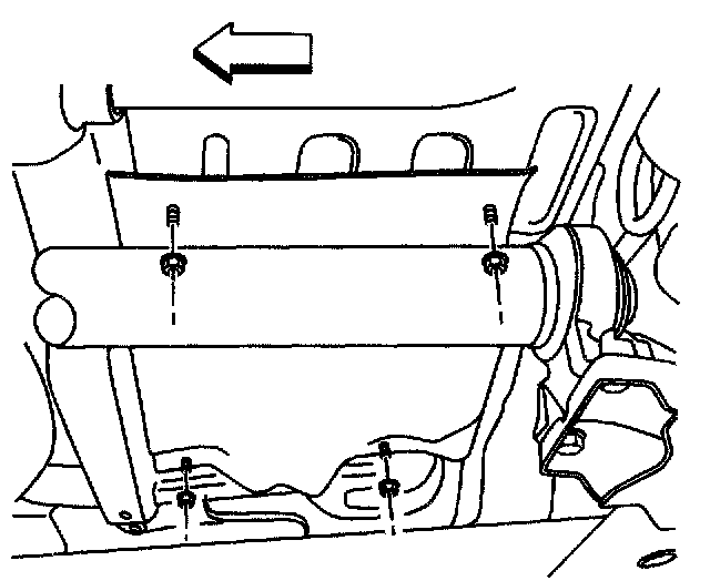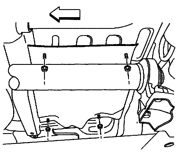 1. Position the exhaust pipe heat shield to the floor panel studs.