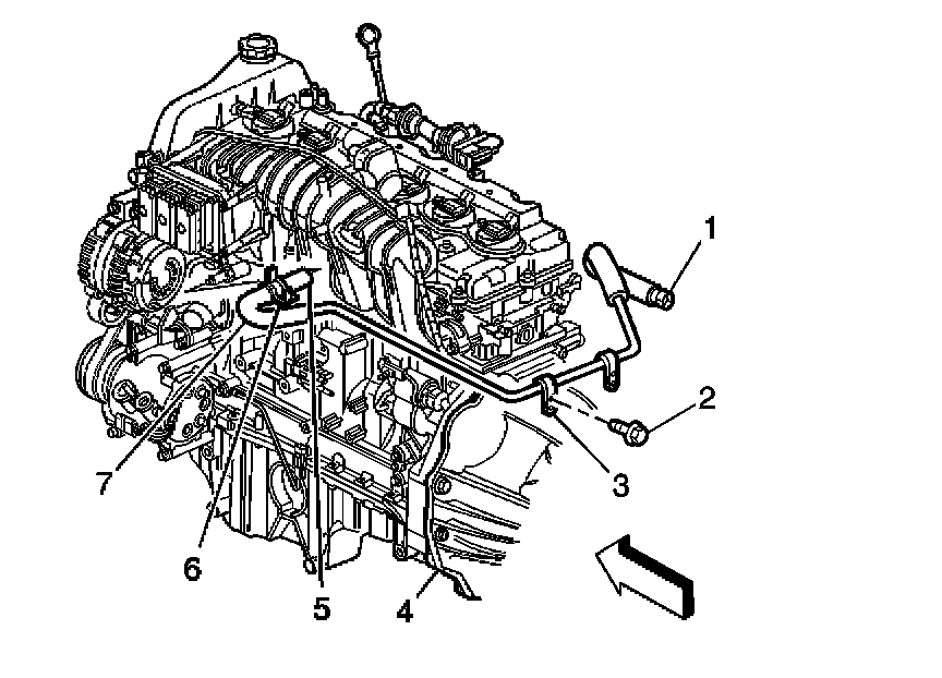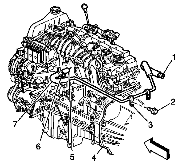 7. Remove the heater outlet hose (7) from the outlet hose fitting.