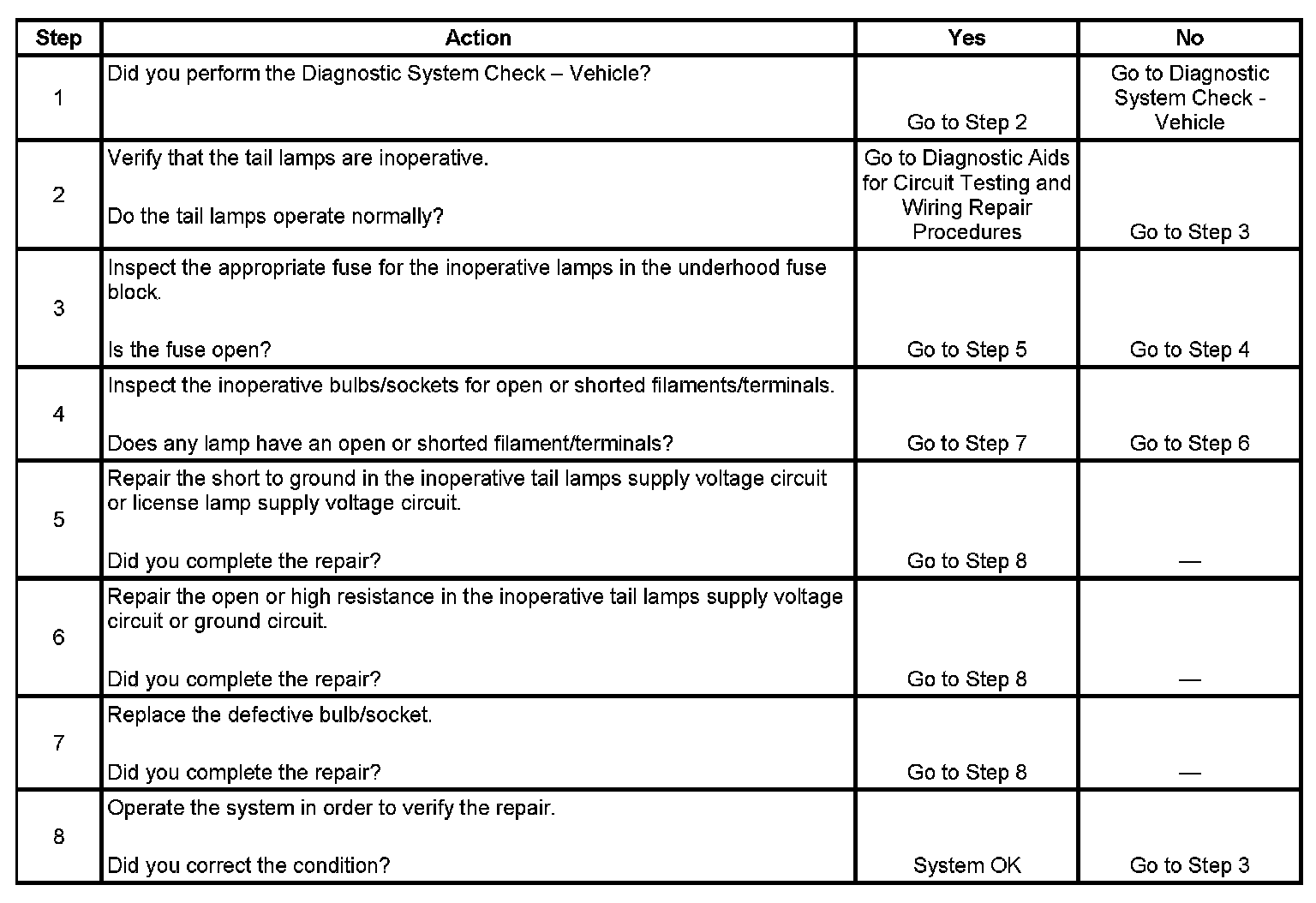 Tail Lamps Inoperative