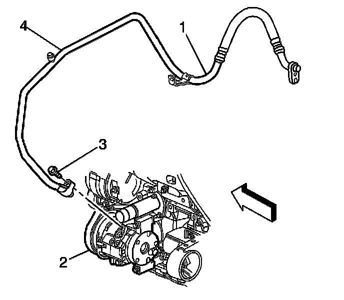 3. Remove the suction hose (2) from the A/C compressor.