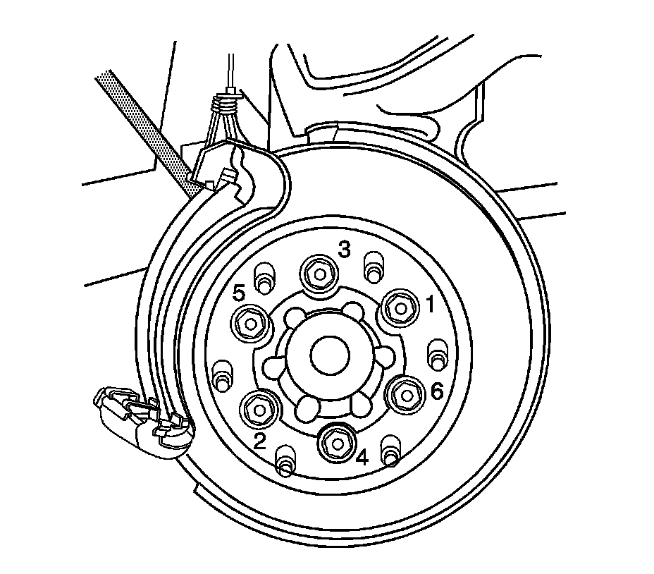 12. Tighten the mounting bolts for the brake rotor in sequence.