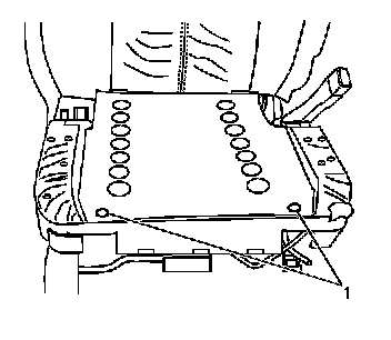 4. Install the bolts that retain the ECU (1) to the bottom the passenger seat cushion frame.