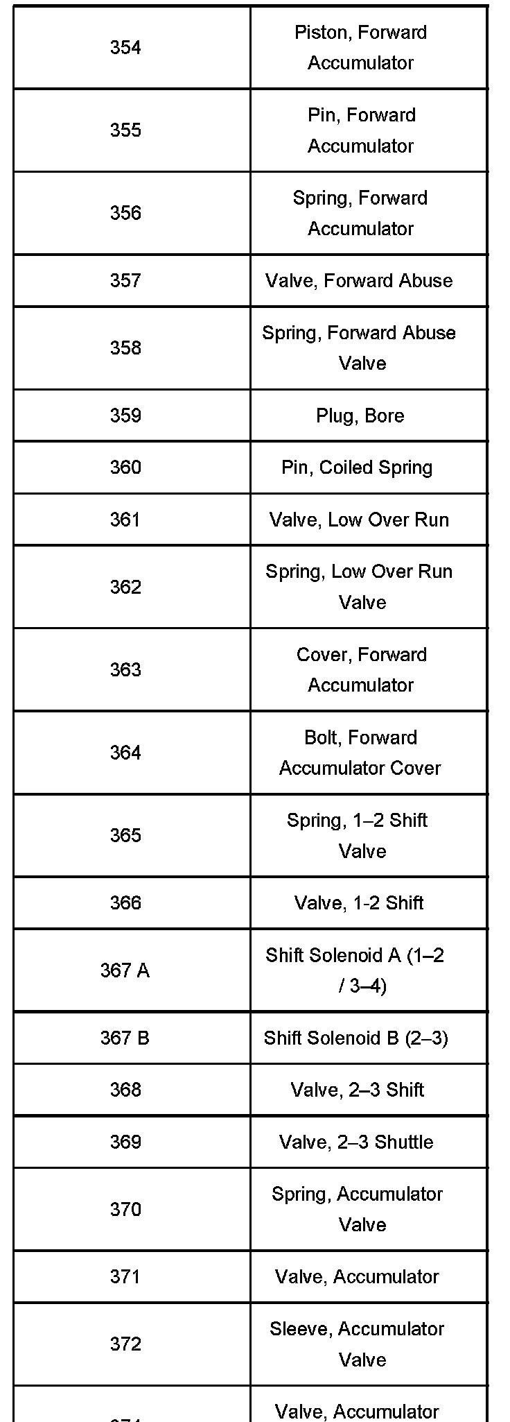 If the valve body has been contaminated with debris from another transmission component failure, then disassemble all bores for complete cleaning of all valve body components. If possible, keep individual bore parts separated for ease of reassembly. Use the illustrations in this bulletin for a positive identification and location of individual parts: