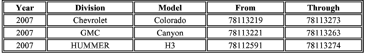 A list of involved vehicles currently in dealer inventory is attached to the Administrative Message (US) or Dealer Communication (Canada) used to release this bulletin. Customer vehicles that return for service, for any reason, and are still covered under the vehicles base warranty, and are within the VIN breakpoints provided below, should be checked for vehicle eligibility in the appropriate system shown.