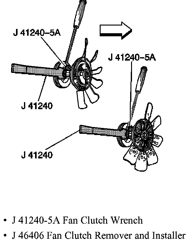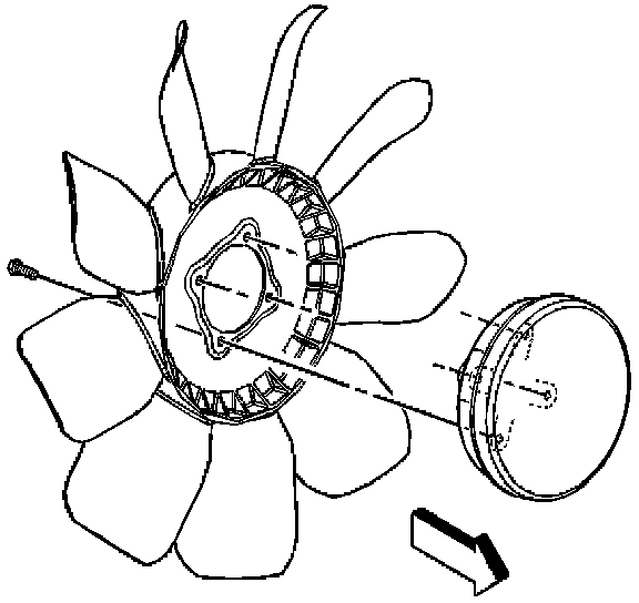 1. Remove the seven-blade fan from the fan clutch. Refer to the Fan Replacement procedure in SI.