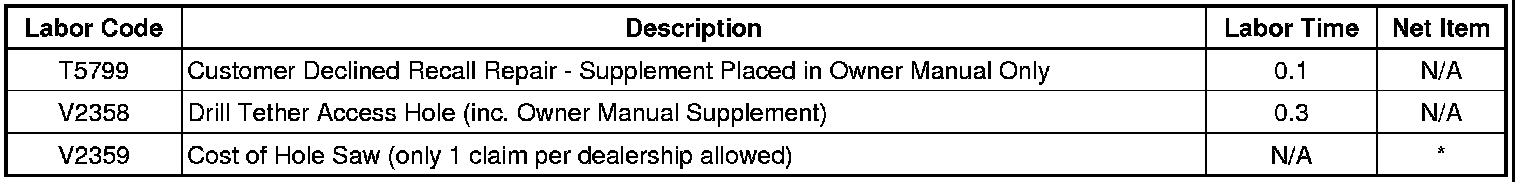 - If the customer does NOT want this recall performed on their vehicle, place a copy of the Owner Manual Supplement (located at the end of this service procedure) in the Owner Manual. No further action is required. Submit a transaction using labor code T5799.
