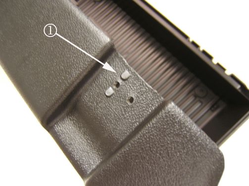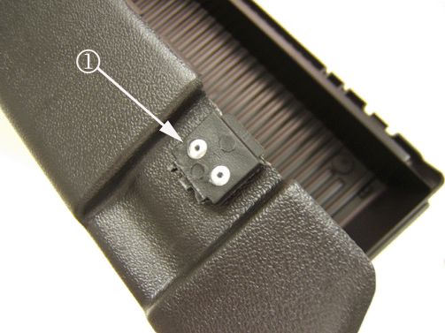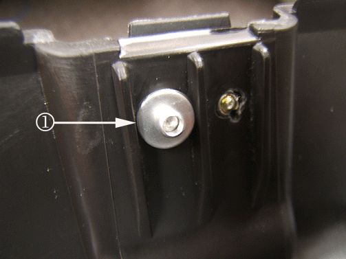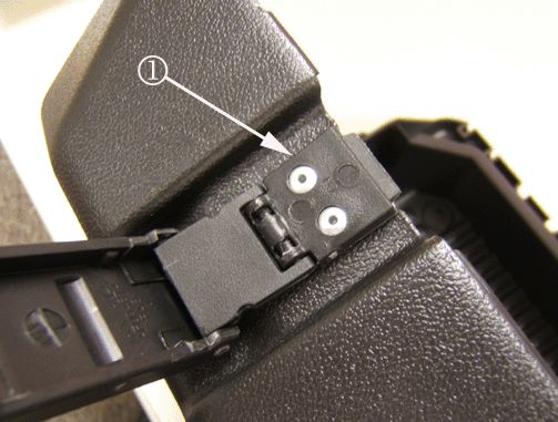1. Remove any remaining broken latch components (1) from the storage compartment. Drill out the rivets from remaining broken parts if required.