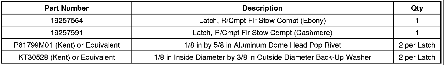 This condition may be caused by the storage compartment latch rivets pulling out of the housing, which may also cause the latch to break.