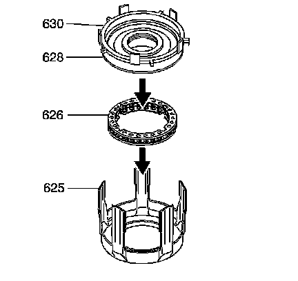 ^ Hold the assembly by the 3rd and 4th clutch apply ring (625) legs during installation.